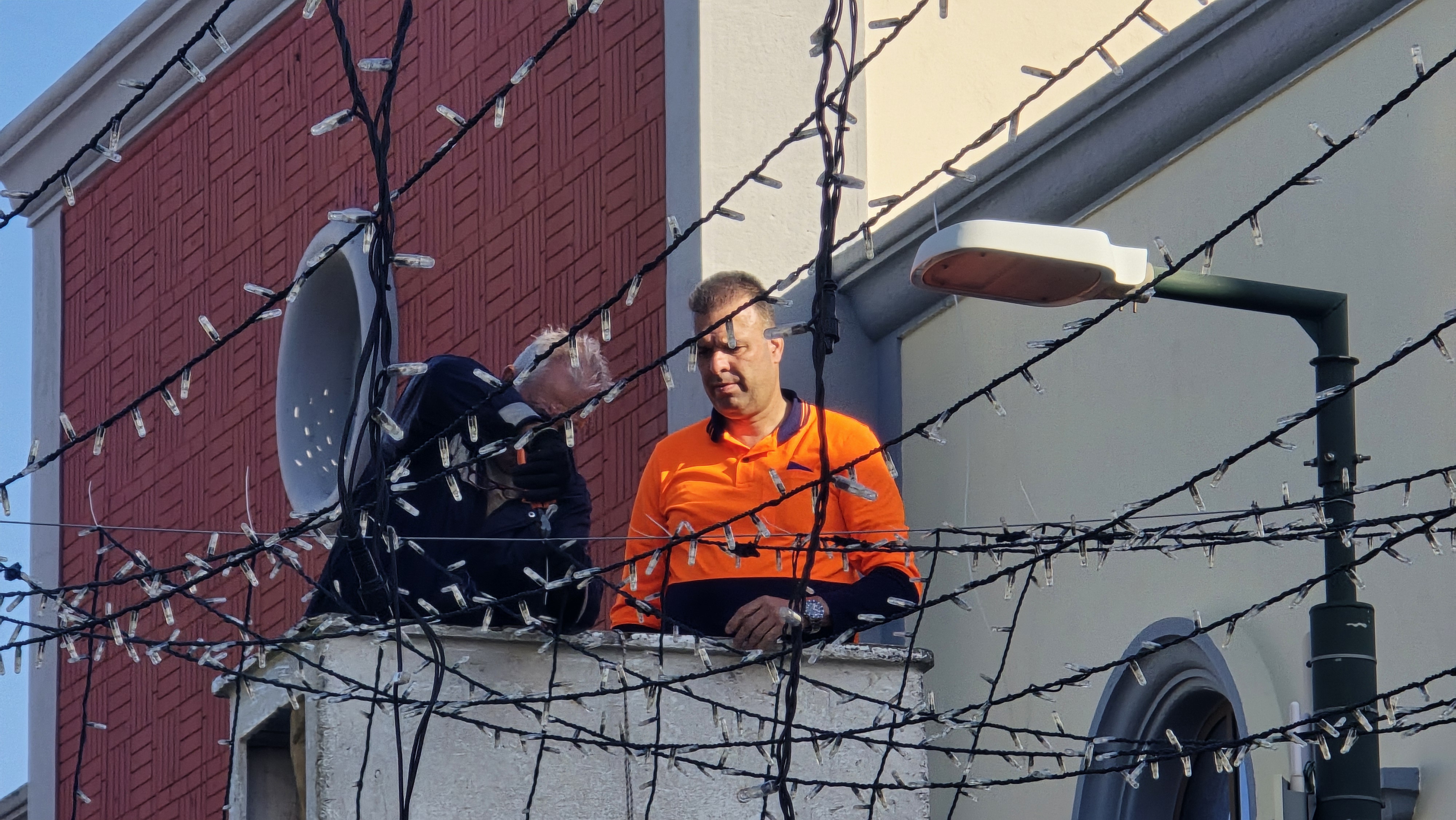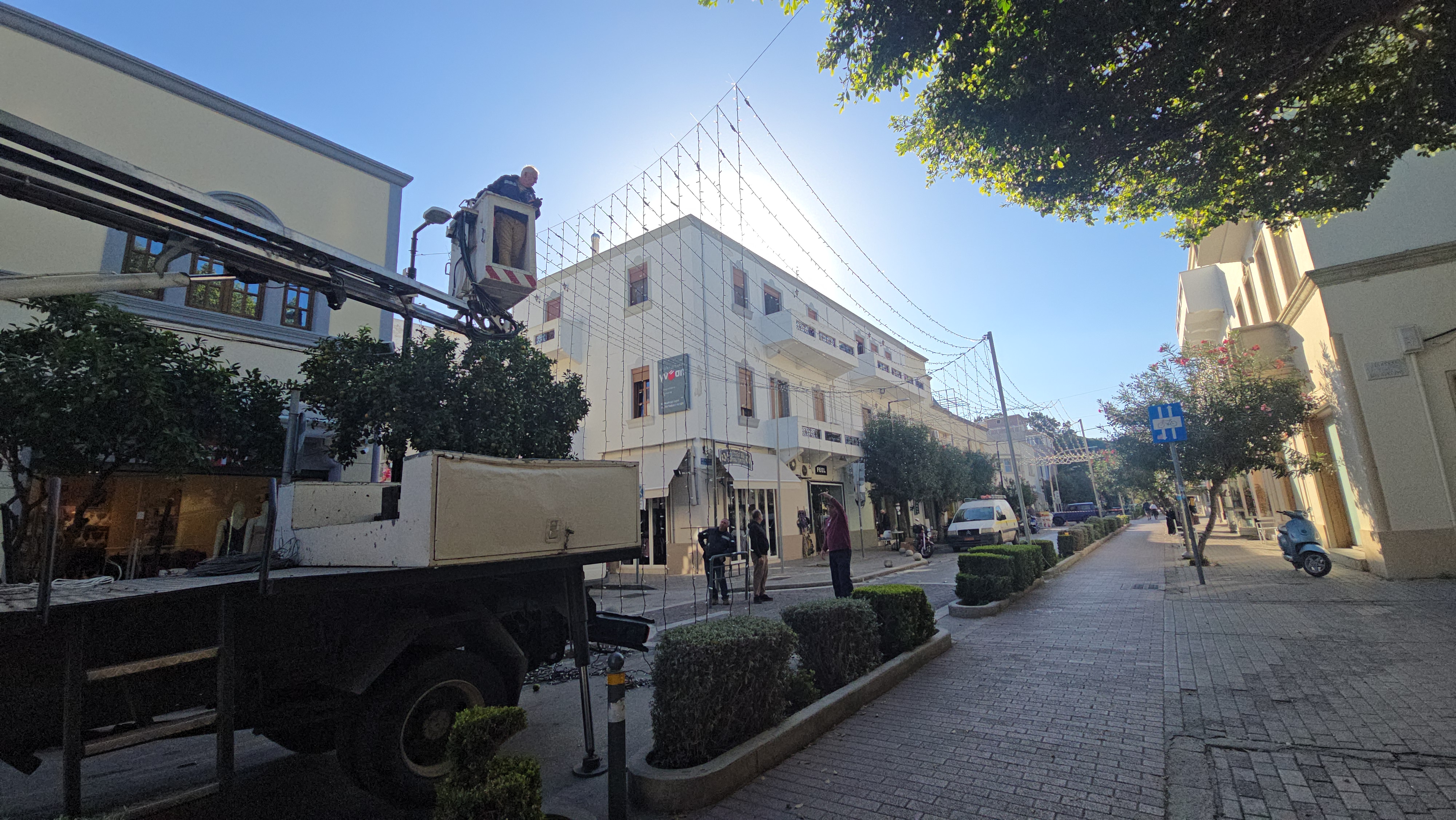 Γιρλάντες, φωτεινά αστέρια, χρυσές καμπάνες και λαμπερά στοιχεία τοποθετούνται ένα-ένα, δίνοντας νέα, γιορτινή όψη στον κεντρικό δρόμο της πόλης. Οι περαστικοί σταματούν για λίγες στιγμές, παρακολουθώντας τη Βασιλέως Παύλου να αλλάζει όψη και να «φοριέται» σταδιακά με φως.
