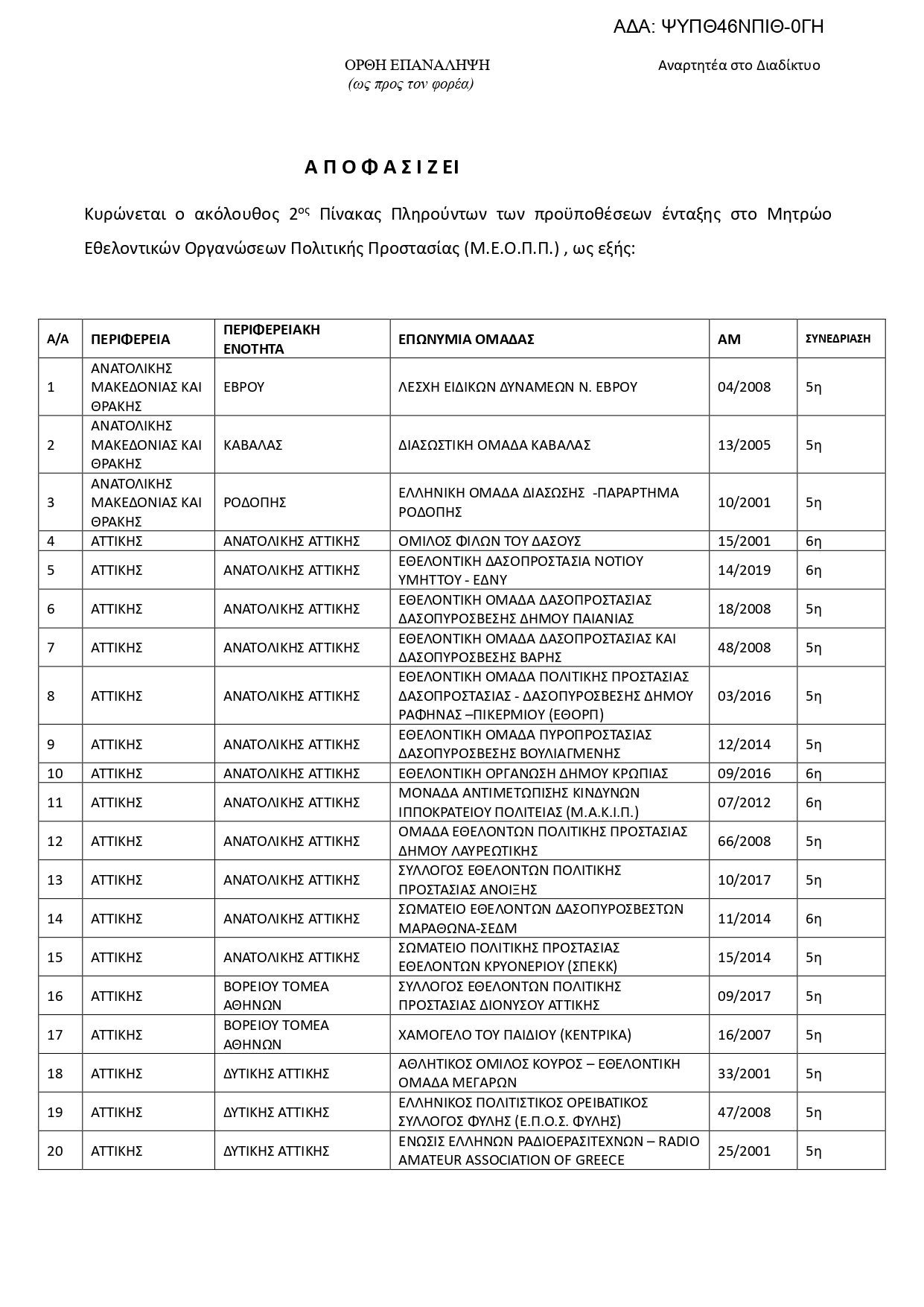 Υ.Γ.: Σας παραθέτω και το link του Υπουργείου με το μητρώο εθελοντικών οργανώσεων.