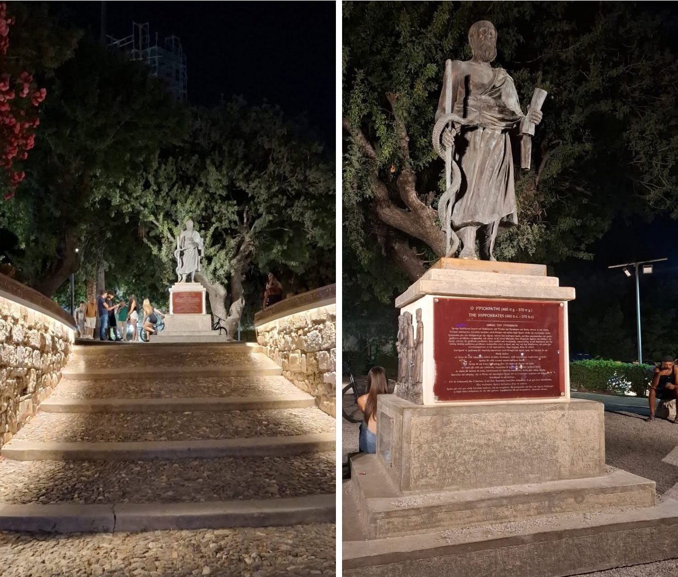 Με ιδιαίτερη χαρά και ικανοποίηση αντικρίζουμε πλέον το άγαλμα του Ιπποκράτη φωτισμένο, όπως του αξίζει. Ένα μνημείο που μέρα με τη μέρα αναδεικνύεται σε διαχρονικό σύμβολο του τόπου μας, αποκτώντας πλέον τη βαρύτητα που του αρμόζει και στη νύχτα.