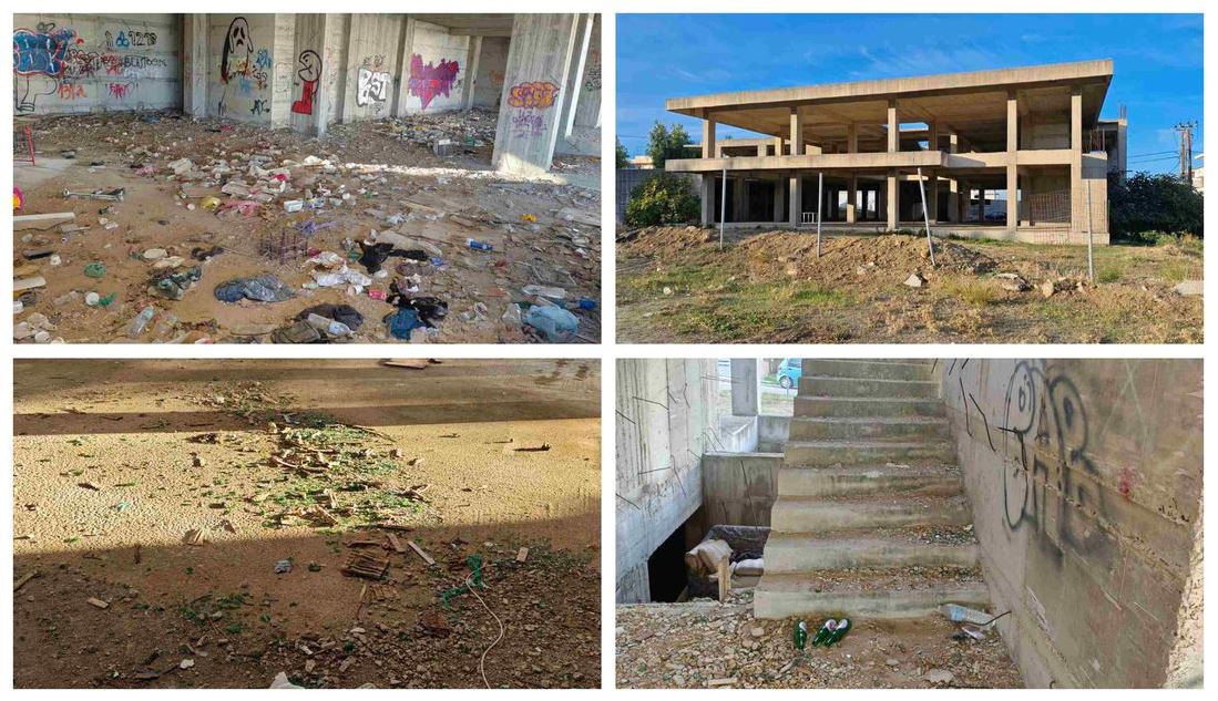 Αν και στην ουσία μιλάμε για ένα γιαπί, αφού δεν πρόφτασε ούτε ως “σώμα” να ολοκληρωθεί, τα σημάδια του καιρού αλλά και όσων “πέρασαν από πάνω του” είναι εμφανή και συνιστά μια μόνιμη υπενθύμιση, για την υποβάθμιση που έχει υποστεί η περιοχή.